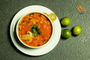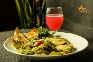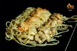 اسپاگتی، میگو، سس خامه مخصوص، ادویه جات، قارچ