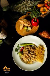 فیله گوشت، فیله مرغ، قارچ، فلفل دلمه، گوجه فرنگی، ذرت، پنیر