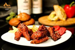 بال و بازوی مزه دار شده با کنجد و سس مخصوص