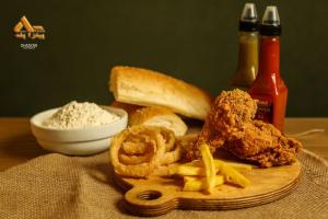 سینه مرغ مزه دار شده، پنیر، سس مخصوص، پوره سیب زمینی