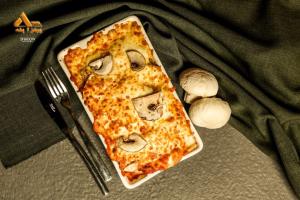 گوشت چرخ کرده، قارچ، فلفل دلمه، گوجه فرنگی، پیاز، پنیر، سس مخصوص