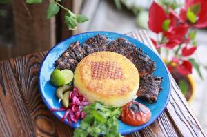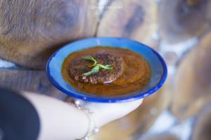 200 گرم گوشت چرخ کرده مخلوط شده با سبزیجات معطر و محلی شمال، تفت داده شده در روغن زیتون و پخته شده در سس مخصوص