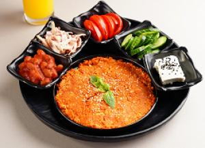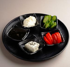 پنیر-گوجه-خیار-خامه-مربا-نیمرو(2 تخم مرغ)-حلوا ارده-خرما-گردو-شیره خرما
