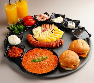 هات داگ90%، نیمرو یا املت، مک مافین، ژامبون مرغ، لوبیا، میوه فصل،حلوا ارده-خامه-شیره خرما-خیار-گوجه-پنیر