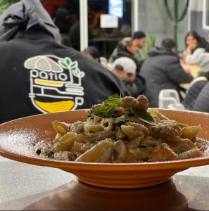 گوشت گوساله رشته ای_خامه_قارچ_زیتون سیاه - فلفل دلمه_پیازچه_سس مونتی_پنیر موزارلا