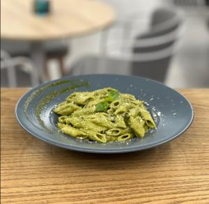 بادمجان، فلفل دلمه رنگی، قارچ، گوجه، پیاز کاراملی، پنیر موزارلا، سس پستو، سس مخصوص