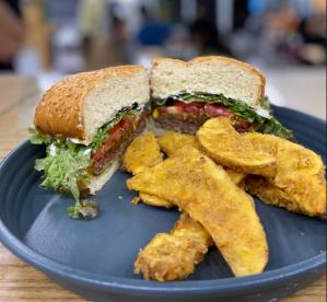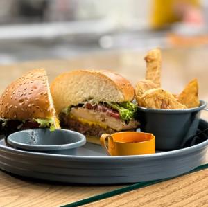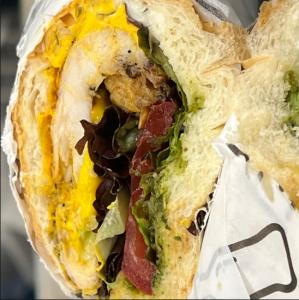 نان ثمین.دو عدد نیمرو.کاهو.گوجه.دو عدد بیکن.دو ورق پنیر ورقه ای