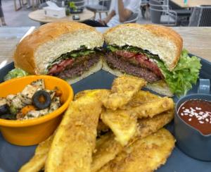 2 عدد سینه مرغ ـسبزیجات ـ سس گریول ـ سیب زمینی تنوری ـ قارچ و خامه