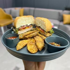 دوعدد تخم مرغ.سالامی.لیمو.سالاد کاهو.زیتون.گوجه گیلاسی