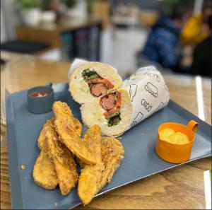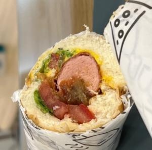 دو عدد تخم مرغ نیمرو.هات داگ .ریحان .گوجه.خیار