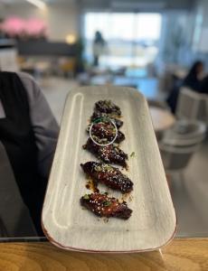 گوشت گوساله اسلایس شده طعم دار، قارچ، زیتون سیاه، پنیر موزارلا، سسمارنیارا-فلفل دلمه