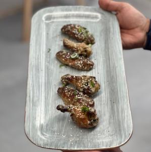 مرغ طعم دار شده، اسفناج تازه، قارچ، فلفل دلمه، کنجد، خامه، پنیر موزارلا