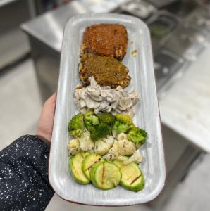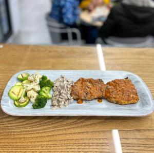 2 عدد سینه مرغ ـ سبزسجات بخار پز شده ـسس سیب بالزامیک ـسیب زمینی تنوری ـسالاد کاهو