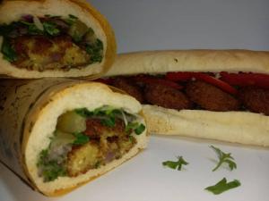 فلافل ۱۰ عدد/بندری ۲۰۰ گرم/گوجه/خیارشور/پیازجعفری/سس مخصوص/باگت ۲عدد